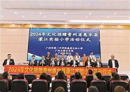 新快报讯 记者方轶报道 近日,广州市第一中学附属詹天佑小学(简称“詹天佑小学”)党支部书记郭裕坚带领的东西部教育协作团队来到贵州省惠水县濛江实验小学(简称“濛江小学”)开展协作交流和捐赠活动。来自广州的爱心组织和企业向学校捐赠了图书等物资,积极参与东西部协作,助力贵州教育事业发展。
