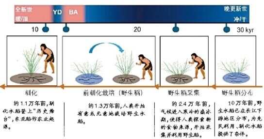 研究表明,早在10万年前,野生水稻就已在长江下游地区分布,为先民利用、驯化水稻提供了条件;约2.4万年前,气候进入寒冷的盛冰期,使得人类探索新的食物来源,开始采集并利用野生稻;约1.3万年前,人类开始有意或无意地栽培野生水稻;约1.1万年前,驯化水稻登上“历史舞台”,东亚稻作农业起源。专家指出,这是人类发展历史上的重要里程碑,可以说,稻作农业起源的时间和麦作农业在西亚两河流域起源的时间是同步的。