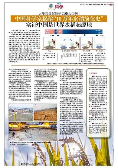 中国科学院地质与地球物理研究所吕厚远研究员科研团队与浙江省文物考古研究所、临沂大学、浙江省浦江县上山遗址管理中心等全国13家单位的专家紧密合作,在上山文化的多个遗址联合开展水稻起源研究,揭示出一段长达10万年的水稻从野生到驯化的连续演化史。这进一步确认了中国是世界水稻的起源地,距今约1万年的上山文化在世界农业起源中具有重要地位。相关论文已于北京时间24日凌晨在国际学术期刊《科学》在线发表。