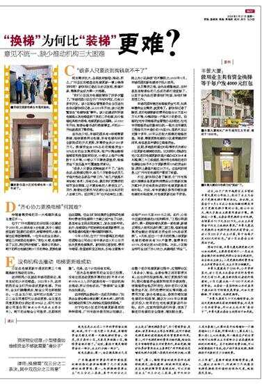 “电梯更新”成为城中各小区刚需,但普遍遭遇募资困难、意见不统一、缺少推动机构三大困难