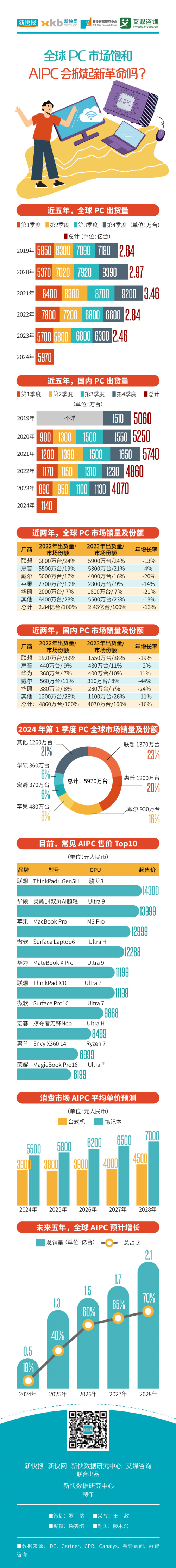 在全新理念的加持下,PC市场从今年第一季度开始复苏。而据市场研究机构Gartner预测,到2024年底,全球AIPC出货量将占到PC总出货量的1/5左右,而到了2026年,AIPC就将正式成为家用电脑市场的主流,非AI的普通PC会大幅降价,届时AIPC的单价也将逐渐稳定在1000美元的价位上。