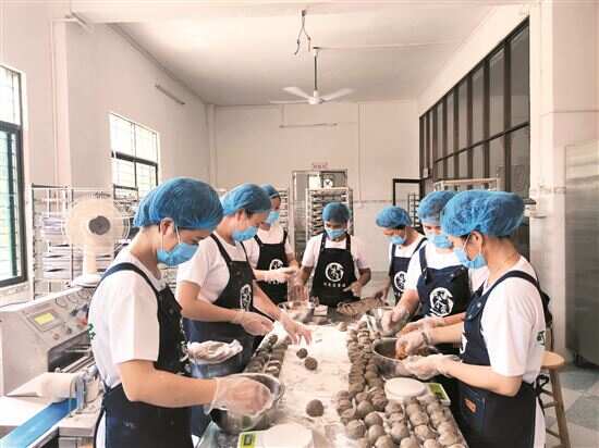 走进茂南区金塘镇白土村委会石头屋村“阿朱家籺”的食品厂,一股田艾的清香袭来。