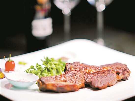 熟成16天的牛肉以橄榄油、迷迭香等煎香后静置15分钟醒肉,再改刀盛盘,风味更丰富,滋味更浓郁。