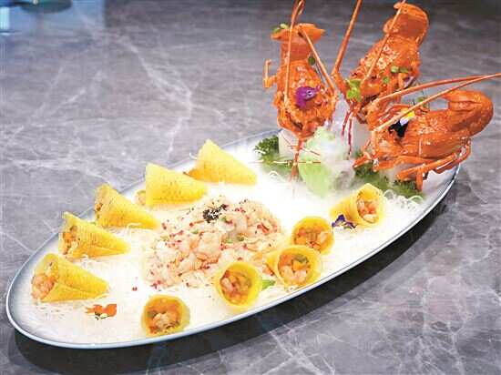 菜品上,叶太山并不拘泥,他喜欢动脑筋将不同的优质食材加以融会贯通,用心钻研琢磨不同原材料的风味特点,“把菜式做深、做精、做透,传承传统的同时也要创新,口味层次以及表达方式,都要创新,并且烹制过程中的每一个流程环节都要衔接到位,尤其是烹饪时间的把控更是重中之重。”以一道他独创的“鹅肝飘雪烩潜龙”为例,主角之一的小青龙起肉用传统炒滑蛋手法烹制,加上一点点西班牙火腿碎增加风味;分装在米制网皮中的虎虾仁炒芹菜粒,则是另外的味型表达;菜名当中的“飘雪”二字来自于用牛奶浸泡过六小时后再烹的鹅肝,以工具将鹅肝片削成碎,飘飘洒洒落在盘中的过程恰如意境十足的潇潇雪飘一般。
