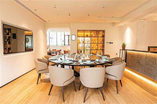 在六号院,“纯净”是一个“无处不在”的关键词,这栋隐于番禺南村万博CBD一隅的独栋别墅,全屋都配置了人均可达每小时30立方米的流动的新风系统,每间包房还额外配置了空气净化器,进入六号院的空间,呼吸也随之轻快顺畅了起来,一时间整个人似乎更“神清气爽”。