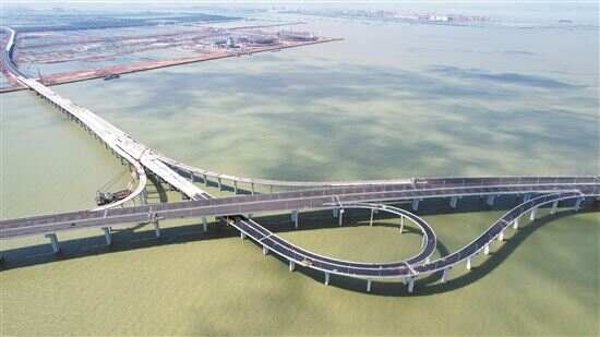 ■5月29日,广州南沙至中山高速公路万顷沙海上互通全面贯通,向年内全线建成通车迈出坚实一步。万顷沙海上互通联接南中高速和深中通道,是实现广州、中山和深圳三地交通转换的重要枢纽。通讯员供图