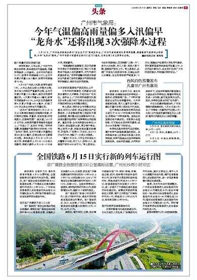新快报讯 记者许力夫 通讯员游智宇报道 6月15日零时起,全国铁路将实行新的列车运行图。调图后,京广高铁全线实现按时速350公里高标运营,广州南至长沙南间最快旅行时间为1小时59分。广州东站至香港西九龙站高铁列车由每日20列增加至26列,同时首开香港西九龙站至张家界西站高铁列车。