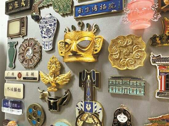 现在,小冼的冰箱贴有各种各样的主题:苏州博物馆的瓷器系列和吴王夫差剑、南京博物院的小粉壶和猪形陶罐、沈阳张学良旧居的建筑、国家博物馆的新石器时代彩陶和夏商周时代青铜器、金沙遗址博物馆的太阳神鸟和金面具、云南省博物馆的金翅鸟和牛虎铜案、新疆博物馆的十二木卡姆……“我的大部分冰箱贴都是参观完一个文博场馆后买的。每一次当我站在冰箱前整理这些小玩意儿,它们就像钥匙一样打开当时的记忆,这也给我的工作带来了更多的启发。”