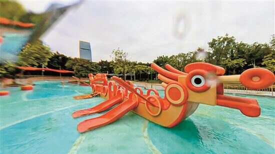 升级改造后的戏水乐园,增加了多种互动玩法以及小设备,其中小朋友登上龙舟,可体验龙舟竞渡的激烈与刺激。消防乐园升级改造后设置了与消防出警相关的玩乐趣味主题装置,包括有滑筒、救援直升机、瞭望塔、泡泡灭火枪等。