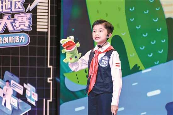 ■小选手绘声绘色地进行讲解。 新快报记者 龚吉林/摄