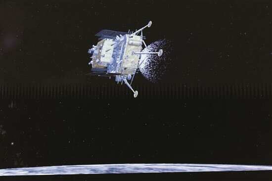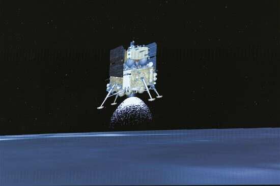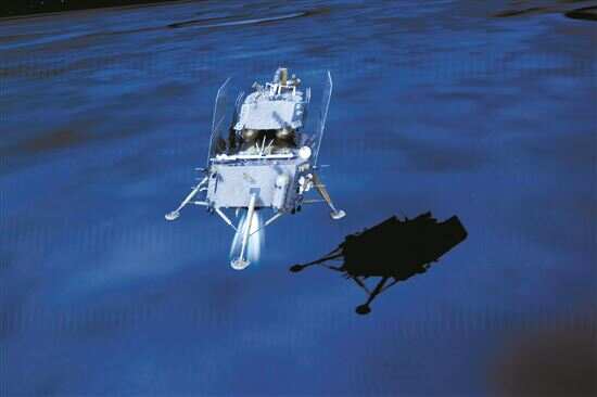 ■这是6月2日在北京航天飞行控制中心屏幕上拍摄的嫦娥六号着陆器和上升器组合体着陆月背的模拟动画画面。