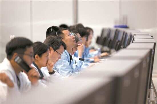 ■6月2日,北京航天飞行控制中心工作人员在监测嫦娥六号着陆月背动态。新华社发