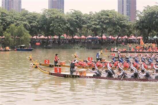 除了标准龙竞速环节,此次大赛还有争奇斗艳的彩龙竞艳,10支不同主题的传统龙舟巡游,展示了番禺深厚的历史文化底蕴、崭新的城市形象以及“百千万工程”建设成果,打响了“中国龙舟文化之乡”品牌。