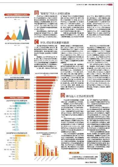 对此,中关村物联网产业联盟副秘书长袁帅向新快报记者分享了当下汽车行业人才流动的趋势。他说,随着新能源汽车市场的快速发展,相关领域的技术人才需求也在持续增长,因此越来越多的传统汽车人才开始流向新能源汽车领域。加之汽车行业对人才的要求越来越高,硕士、博士等高学历人才以及具备专业技能和丰富经验的技术人才更受欢迎。另外,随着汽车产业的不断发展,一些二三线城市开始崛起为新的汽车产业中心。这些城市生活成本较低,吸引了越来越多的人才前来发展。