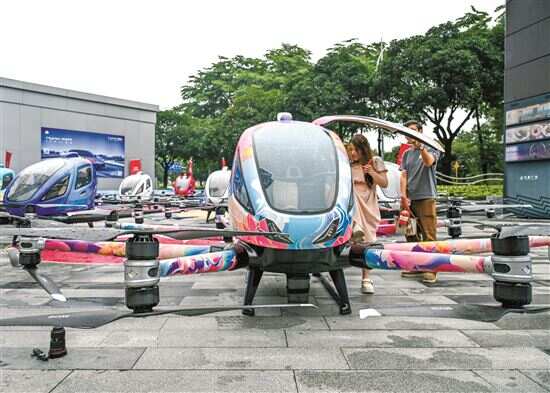 ■6月3日,一场低空航展在广州天德广场举行,十余架明星eVTOL(电动垂直起降飞行器)机型集中亮相,进行静态展示。日前广州发布《广州市低空经济发展实施方案》,本次航展是国内低空经济相关企业助力推动广州成为国内首个载人飞行商业化运营城市的积极行动。新华社发