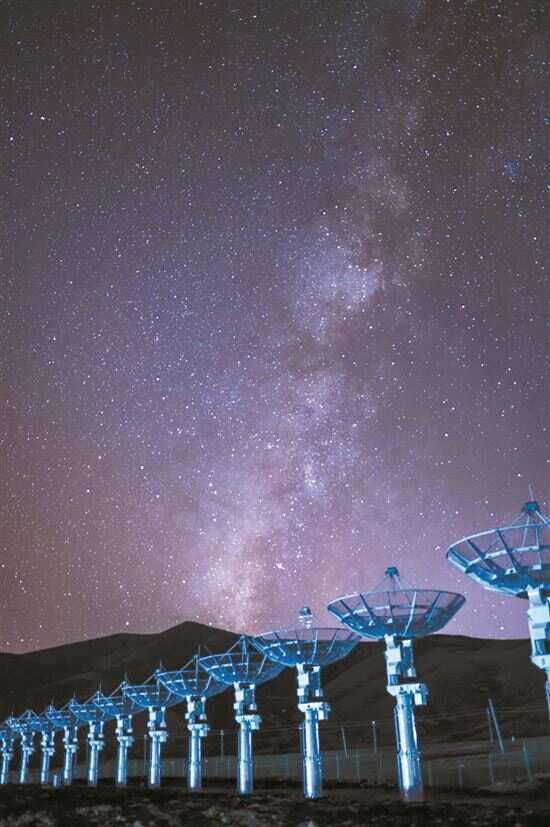■位于四川省甘孜州的圆环阵太阳射电成像望远镜,由313部直径6米的抛物面天线构成,它是目前全球规模最大的综合孔径射电望远镜,不但能监测太阳的各种爆发活动,还能监测太阳风暴进入行星际的过程。