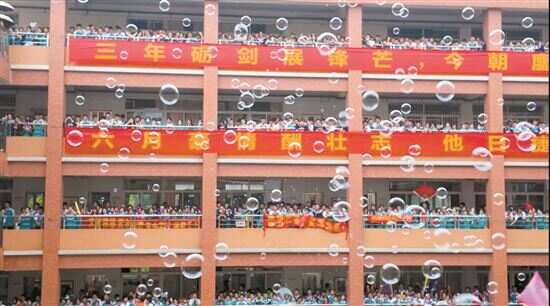 ■广州市第五中学高考“喊楼”活动。