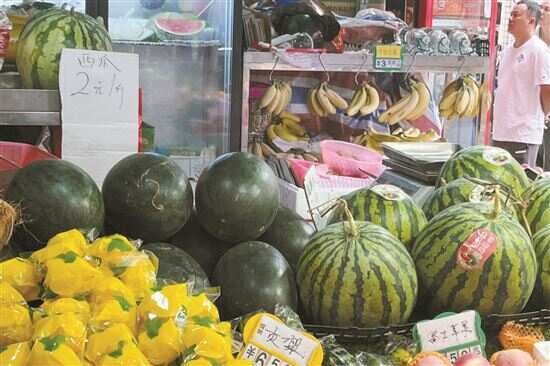 近期,消费者对西瓜价格的下降感受颇为明显。市民王阿姨告诉新快报记者,上个月底她买西瓜还是5元/斤,最近“两三块一斤的瓜很好找了”。