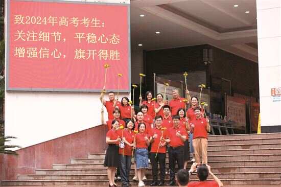 来广州奥林匹克中学送考的胡女士,不仅穿上旗袍,还给女儿带来一束向日葵,“这是我自己包装的,专门挑了三朵,寓意向阳而生,一举夺魁。”胡女士说,这是她第三次“陪考”,“我有三个孩子,两个哥哥一个妹妹,六年前大哥哥高考,今年轮到最小的了。”她笑说,自己陪考也陪出经验来了,“大哥哥高考时我紧张到不行,现在则比较淡定,这次因为是女儿高考,我穿得隆重一点。陪他们一路考试,感觉我自己也在成长,就是平常心对待”。