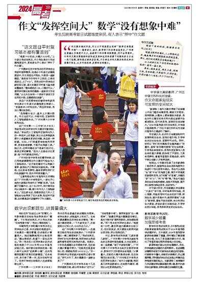 “选择题分变少,基本上大题分数多。作文也还可以,中规中矩,互联网和人工智能都是热点。”广州市第十六中学有考生说。