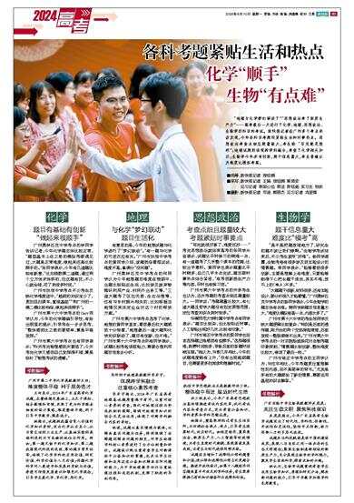 广州市培正中学考点的王同学认为,与往年相比,今年考题更注重理解性的内容,而不是简单的背书。“尤其是所有的大题都给了新的情景,需要运用基础知识去解答。”