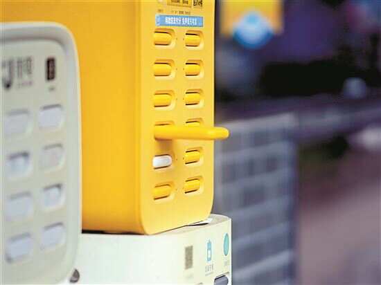 ■市民正在使用共享充电宝给手机充电。