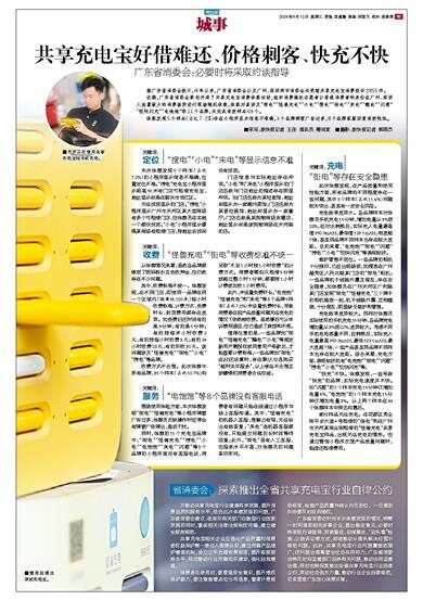 为推动共享充电宝行业健康有序发展,提升消费品质和服务水平,结合此次体察发现的问题,广东省消委会建议:政府及有关部门在鼓励行业创新发展的同时,重视相关法律法规制定完善,建立健全服务规范。