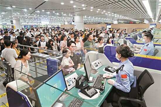 新快报讯 记者李红云 通讯员何志金 丁瑞报道 6月11日,据珠海边检总站拱北边检站统计数据显示,6月8日至10日,经拱北口岸来往粤澳两地的出入境人员总量达101万余人次,日均客流超33万人次,较2023年同比上涨近14%,创下近4年来,假期通关客流最高纪录。