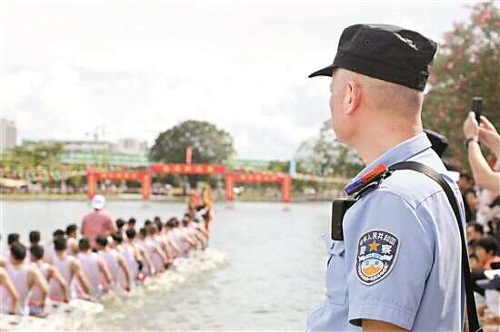 ■汕头公安民警在多村龙舟文化活动现场做好安保工作。通讯员供图
