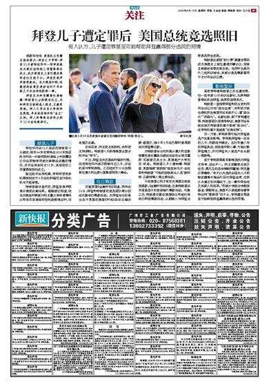 据新华社电 美国民主党籍总统约瑟夫·拜登之子亨特·拜登11日被特拉华州一陪审团裁定关联非法持枪三项重罪罪名成立,成为美国史上首位遭定罪的在任总统子女。拜登发表声明接受裁决。当天晚些时候,他就控枪政策发表讲话时只字未提儿子非法持枪获罪一事。