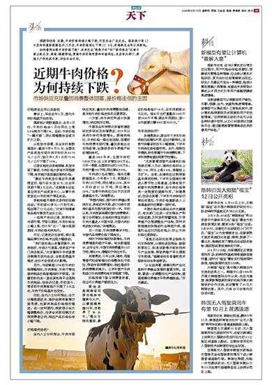 另一方面,牛肉消费需求不旺,与替代品消费价格下降有关。