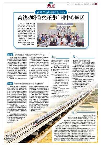 “高铁进城”加速 高铁列车将停靠广州站、广州东站