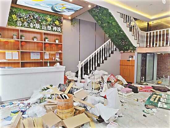 6月11日,新快报记者在现场看到,该门店门上张贴了“旺铺招租”的告示,家政人员正在清理现场。记者致电房东,对方表示原租户还欠着5月的租金和水电费,现在只想事情快点处理好,“以后不愿意再将店租给美容店了”。