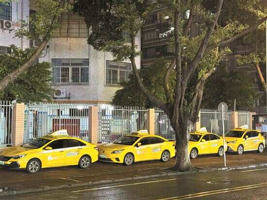 ■晚上,棠德南路两侧的非机动车道上,违停的的士排成长龙。