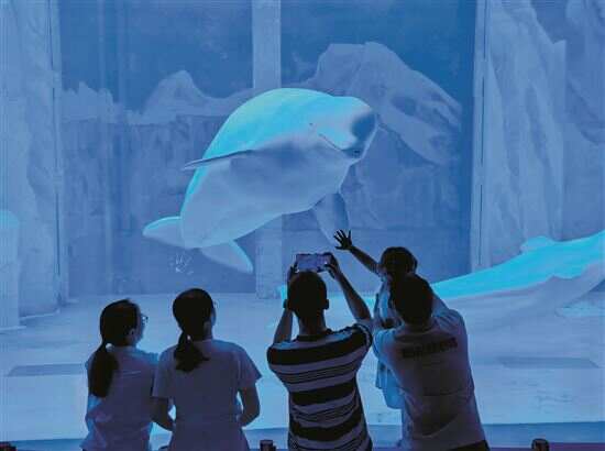 ■市民在白鲸之恋欣赏白鲸的曼妙舞姿。