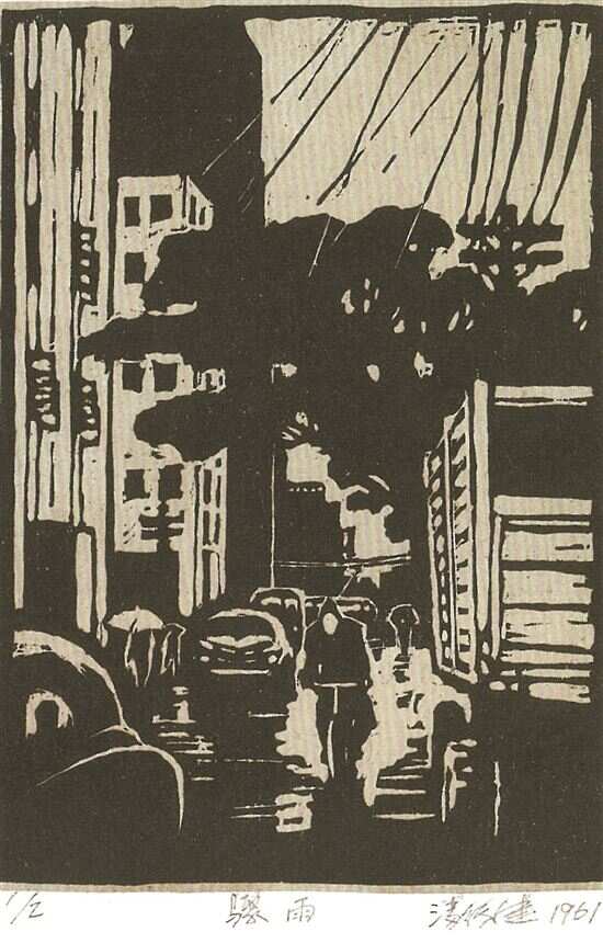 ■潘行健1961年作品《骤雨》,11.5cm×8cm。