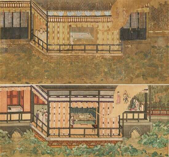 ■上海龙美术馆所藏《瑞应图》(上)和崇正本次拍卖仇英《临瑞应图》相同内容之“显仁梦神”