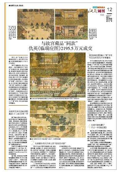 昨天,在广东崇正2024春季拍卖会上,明代项元汴旧藏、仇英《临瑞应图》以2195.5万元成交。