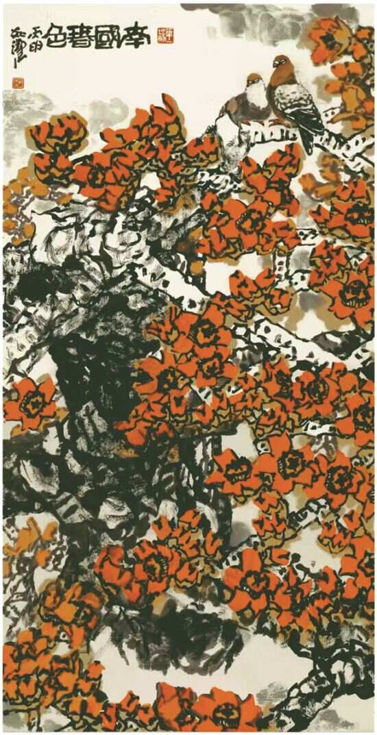■梁如洁2016年作品《南国春色》,138cm×69cm。