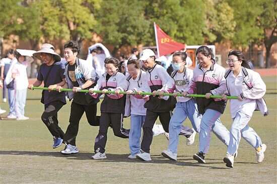■学生们释放紧张情绪、放松身心。新华社发