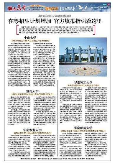 随着“阳光高考 赢向未来——全国高校广东招生2024高考志愿填报现场公益咨询会”广州专场和湛江专场的顺利举行,近百所在粤招生高校2024年最新招生资讯正式对外公布。来自中山大学、华南理工大学、深圳大学、广东外语外贸大学等高校的招生负责人,现场为考生及家长带来最“新鲜热辣”的招生资讯和权威的志愿填报指引。近日,广东各大高校2024年夏季高考招生计划也陆续出炉,新快报记者梳理了部分高校的招生变化和亮点,希望为考生志愿填报带来助力。