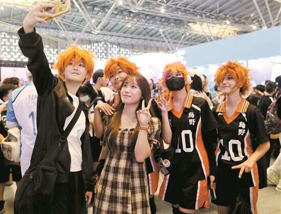 ■动漫展上参观者和动漫造型的角色扮演者合影。 新华社发