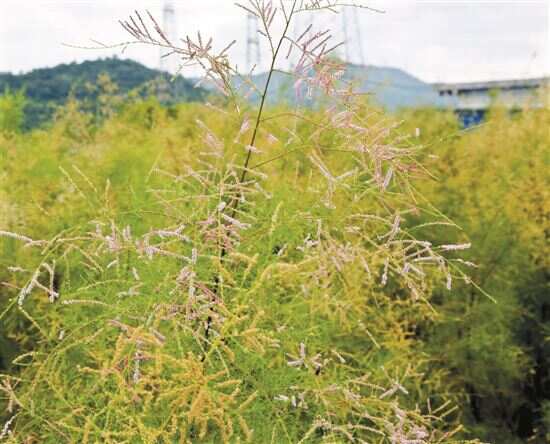 目前,南方柽柳园已成功培育15万株金滩柽柳苗,在广东部分沿海地市成功移植栽种且长势良好。刘德玺表示,金滩柽柳花色品种多样,绿叶长青,景色秀丽,景观效果好,同时金滩柽柳还具有药用价值,散发浓厚的中药芳香味等诸多优势。