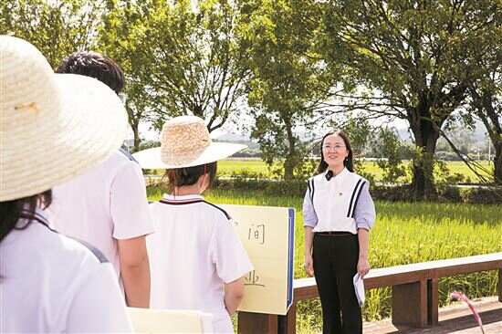 “同学们好,我们这堂思政课将要学习的是《中国特色社会主义》第5课——推动高质量发展……”当天,思政实践课在稻苗如画的增城丝苗米稻田公园中“开讲”,市技师马克思主义学院负责人姜兴莹介绍了此次思政课的内容及目的。她表示,此次希望通过探索丝苗米基地的发展奥妙,帮助解答“什么是新发展理念”等问题,引导大家在实践中探索“如何推动高质量发展”。
