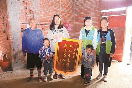 ■广州市医疗行业协会党支部书记兼秘书长许秋霞(右二)上门探访烧伤治愈儿童家庭。