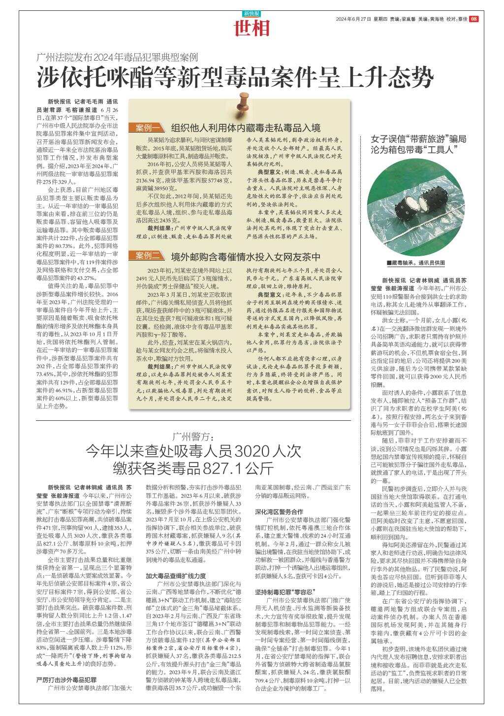 广州法院发布2024年毒品犯罪典型案例
