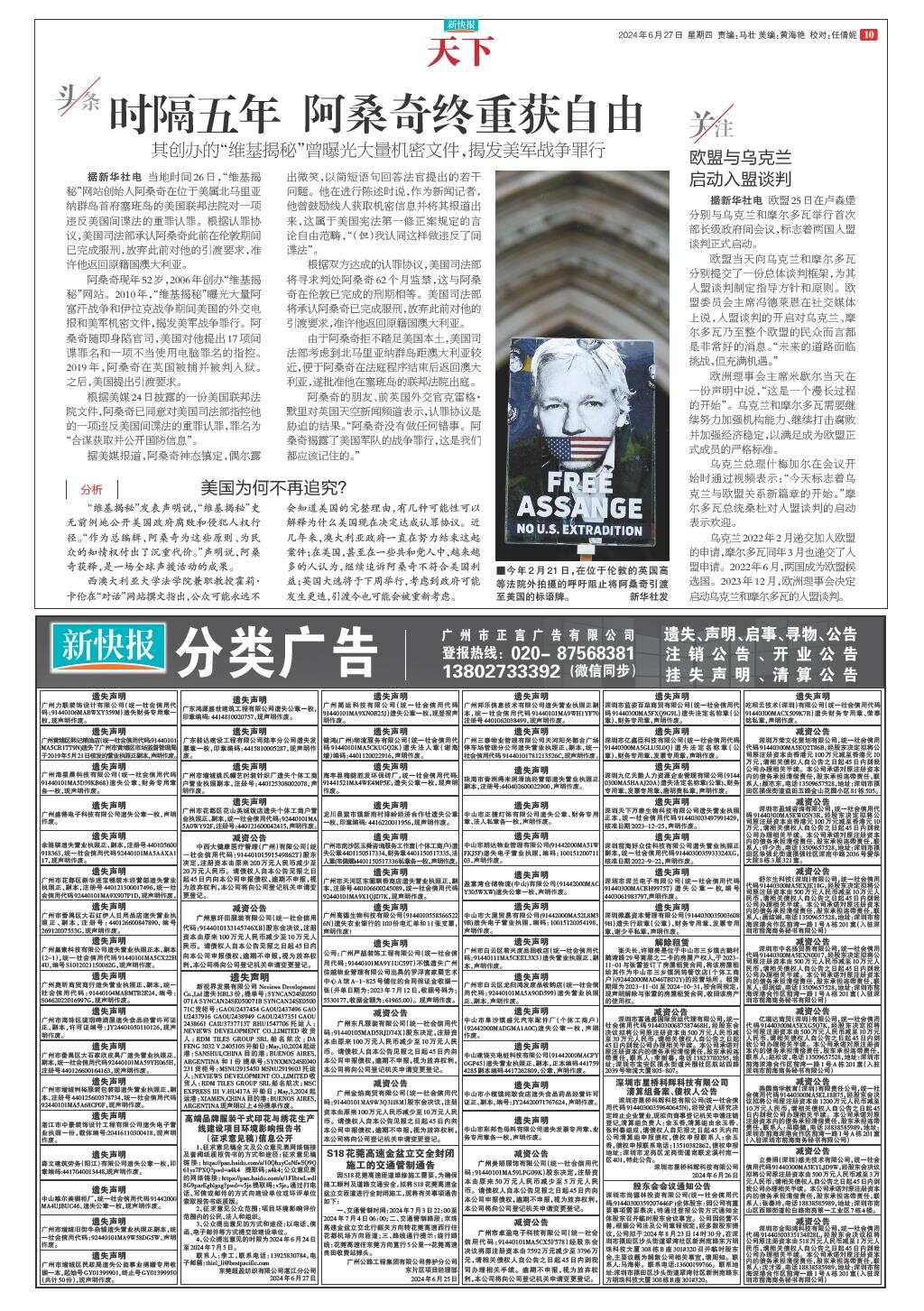时隔五年 阿桑奇终重获自由