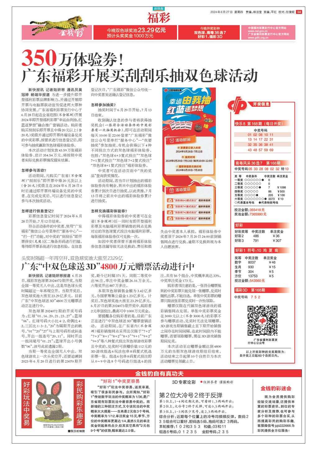 350万体验券!广东福彩开展买刮刮乐抽双色球活动