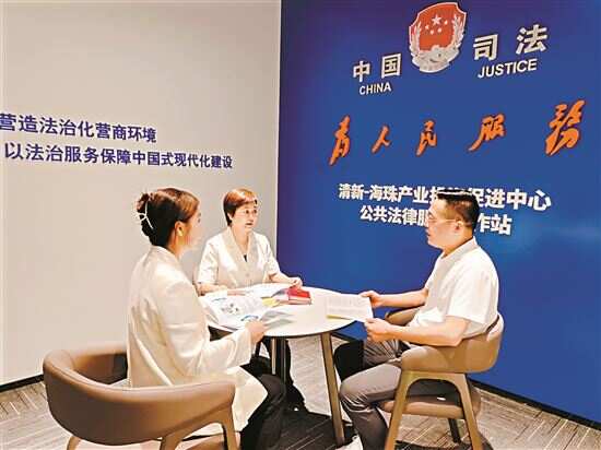 清新-海珠产业投资促进中心(以下简称“中心”),是清远市清新区设在广州市海珠区的“反向飞地”,即清新区主动借力海珠区的人才和产业优势,促进自身经济发展的创新之举。今年5月,这一“飞地”新增了公共法律服务功能,为广清两地的协作交流进行法治护航,并在短短一个月间促成了9家企业签约,提供咨询服务110余宗。
