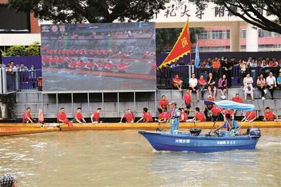 6月,为确保龙舟民俗活动顺利进行,天河区水上环境卫生管理所全员出动,提前对龙舟活动现场周边水域进行清理。在活动当天,更是增加巡逻和保洁力度,水上清洁艇来回游曳,与龙舟“共舞”,保持着水域的整洁和美观。